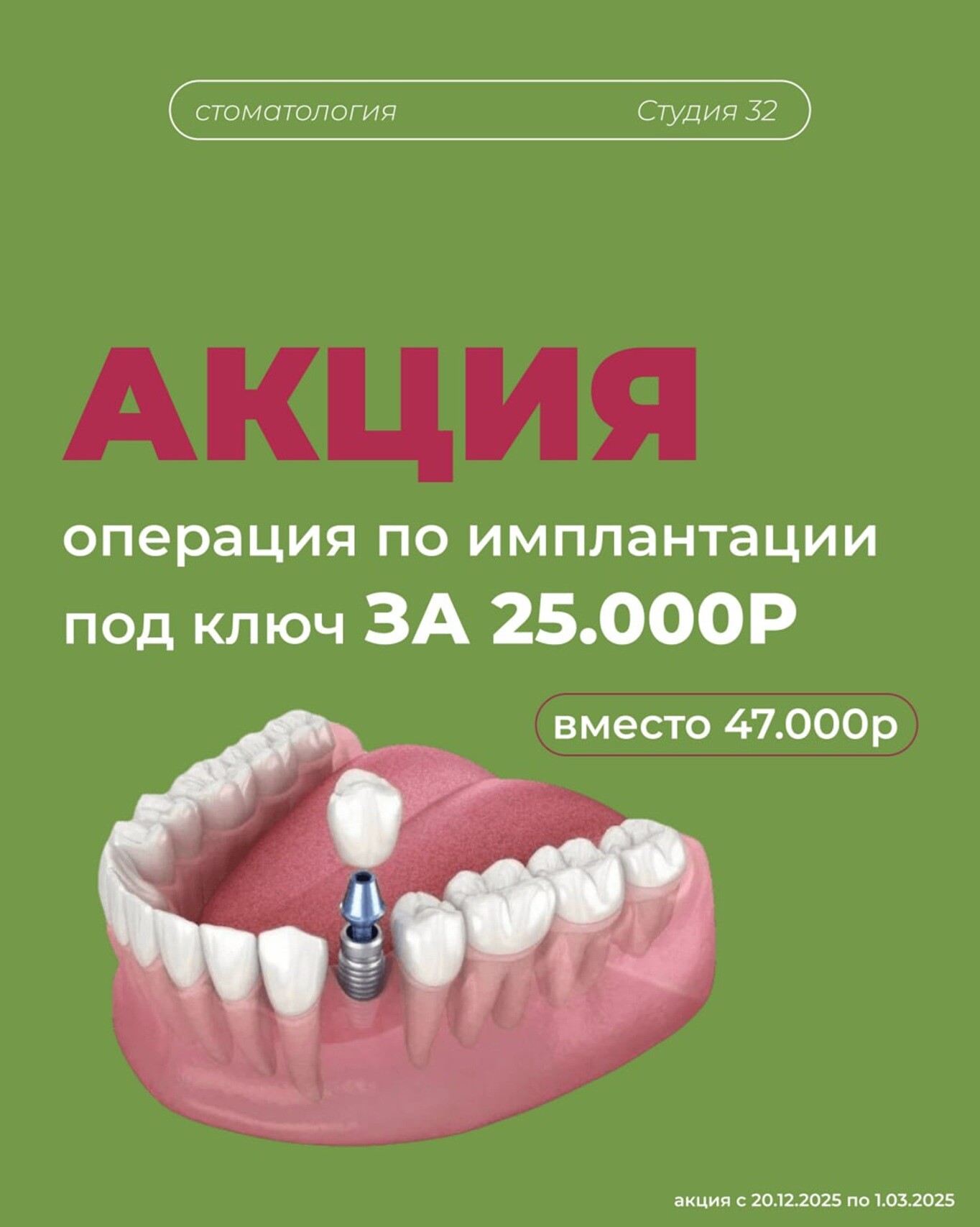 Обратившись в стоматологию Студия 32, Вы получаете высокопрофессиональную помощь, безболезненную и доступную услугу.